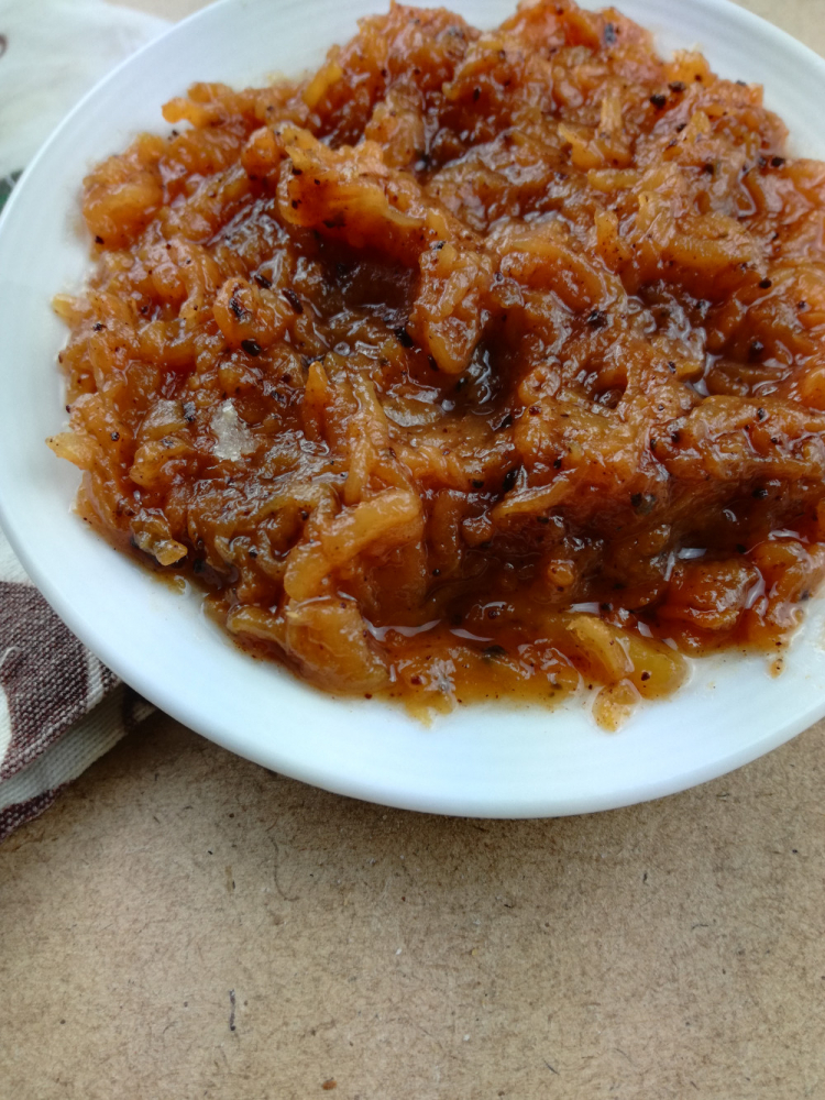 | Le goût déjà sucré naturellement de ce légume est relevé par la cannelle (sucre-cannelle mélange très utilisé dans la cuisine marocaine).Il est généralement proposé en entrée ou en accompagnement (froid ou chaud) à d'autres plats ou tajines. Le secret est une cuisson à feu très doux favorisant une bonne caramélisation.