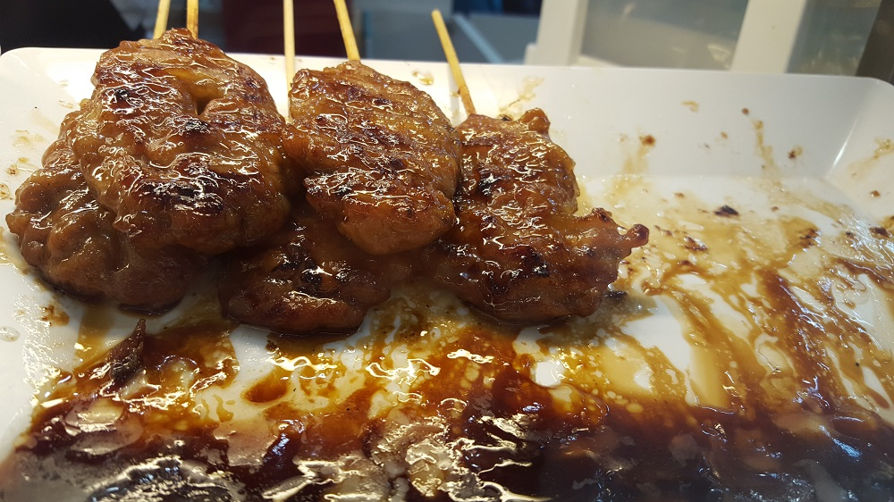 Le porc est mariné avec principalement du sel et du poivre, de la sauce soja, de la sauce aux huîtres, et / ou de la sauce de poisson peut également être ajoutés, puis mis dans les brochettes pour être griller sur du charbon. Durant la cuisson, la viande pourrait être enduite de lait de coco pour plus de goût. Habituellement, les brochettes sont servies avec du riz gluant.