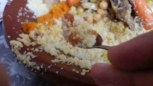 Plusieurs variétés de Couscous existent au Maroc, celui aux raisons secs et oignons confits que l’on appelle « Tfaya » est une version sucrée-salée très réputée pour son goût original et savoureux.