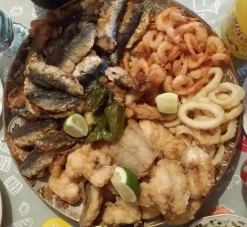 | Le samedi, c’est aussi le jour de la semaine où les mamans se rendent au souk pour faire les courses et rentrent à la maison portant dans la main un panier en osier garni de toute sorte de poissons frais, qui viendra décorer la table du déjeuner. Une bonne friture de poissons bien croustillante est toujours au rendez-vous, ne serait-ce qu’une fois par semaine, ça reste un vrai régal et une belle opportunité de regrouper la famille. La friture de poissons à la marocaine, c’est aussi un très bon plat à manger dans la rue, les vendeurs offrent à leur clients une variété de poissons frits, qui ne peut que les rendre satisfaits et fidèle à leur endroit favori. Plusieurs restaurants marocains sont aussi spécialisés dans les fritures de poissons, on les retrouve partout au Maroc et surtout dans les régions nord du pays, dans les villes côtières qui connaissent une forte activité de pêche grâce à leur emplacement dans des zones portuaires (Essaouira, Safi, Tanger…). Il n’y a rien de plus facile que de préparer une friture à la maison, il suffit de choisir une variété de poissons et fruits de mers (sole, merlan, crevette et calamars…). Les saler, les poivrer et les fariner, ensuite les Faire frire dans un bain d'huile.A la maison, dans un Restaurant chic ou petite friterie, du moment que le poisson est frais et abondant, tout le monde est content !