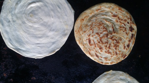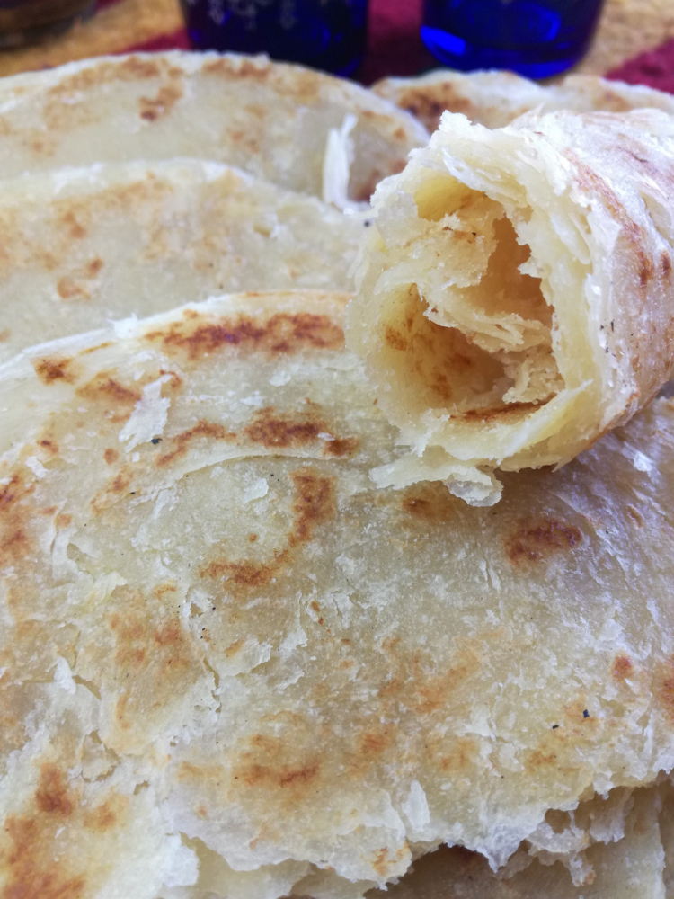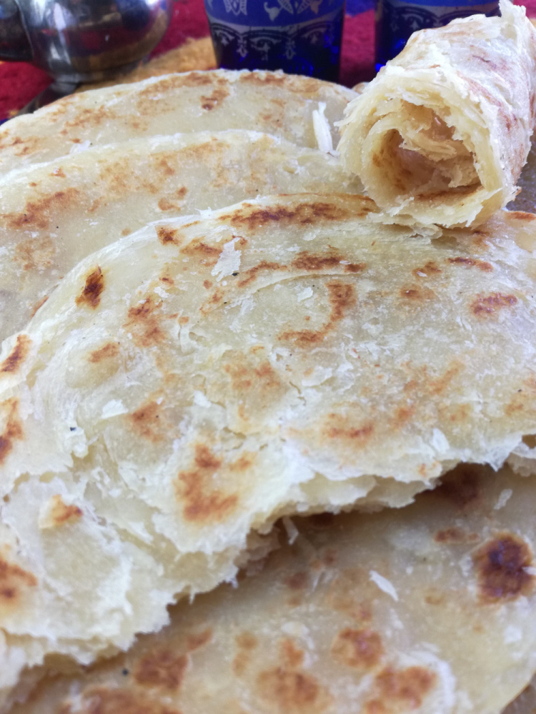 Pour réussir des « Mlaoui », la recette de la pâte est identique aux galettes classiques tout comme la cuisson qui se fait dans une poêle en fonte. En ce qui concerne la technique, il faut délicatement étaler une boule de pâte avec la paume de la main jusqu’à ce qu’elle devienne fine. Ensuite, rabattez les côtés vers le milieu et aplatissez de façon circulaire jusqu’à l’obtention d’un feuilletage en spirale. Sur une poêle chauffée et légèrement huilée, faites cuire les galettes en les faisant dorer des deux côtés. L’odeur qui va imprégner votre cuisine va vous donner un avant-goût de ce que vous allez savourez ! Tendres et croustillants à la fois, les galettes roulées doivent être servis chaudes et c’est encore plus gourmand avec un peu de beurre et miel pour les rendre un peu plus sucrées.