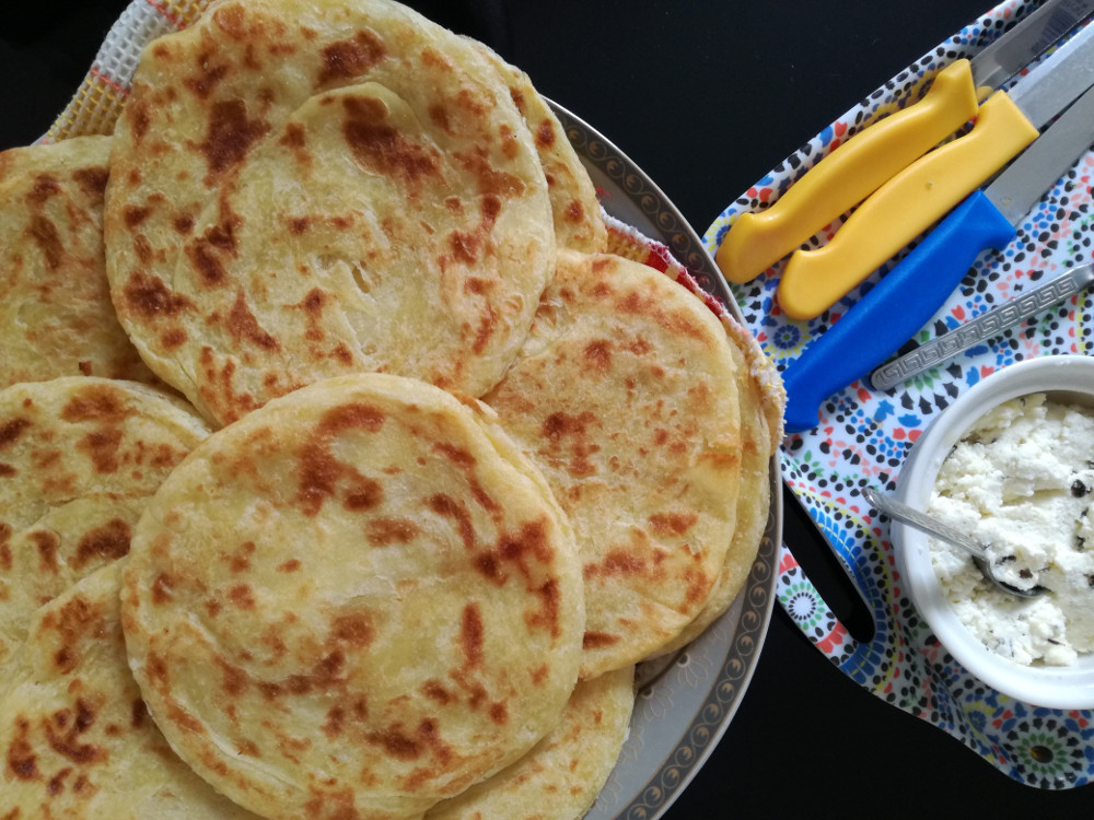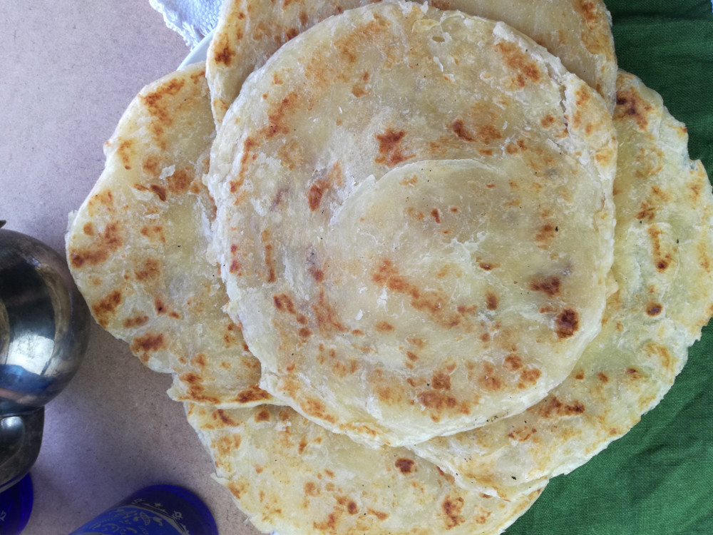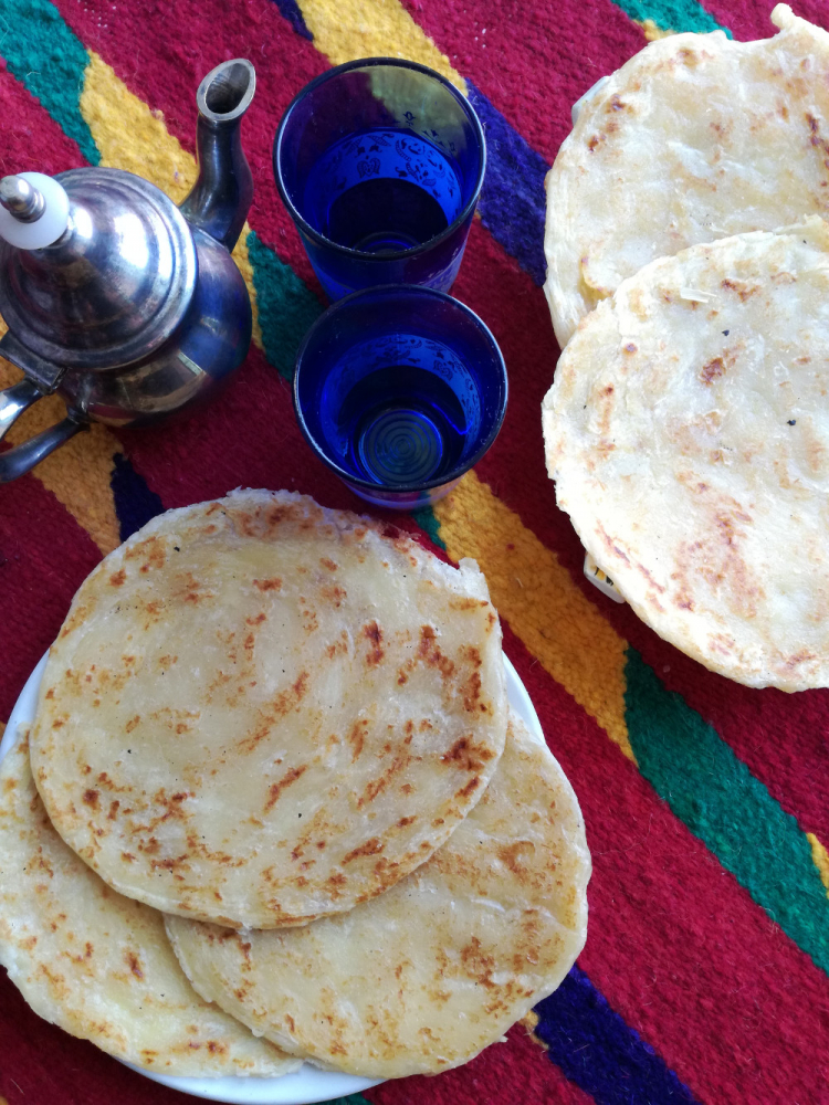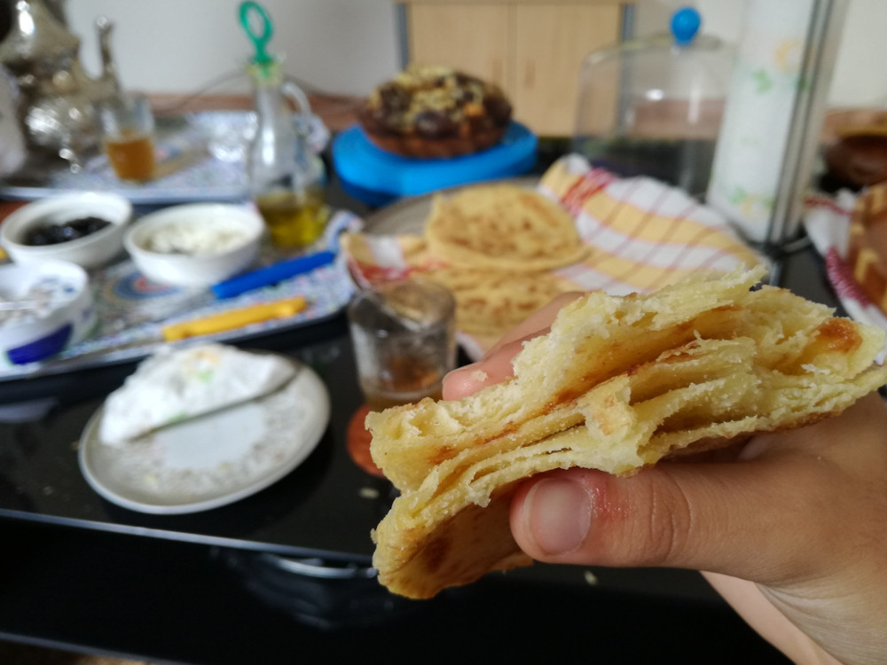 Du blé, on fait mille et une spécialité marocaine. Ici les "Mlaoui". Des galettes feuilletées dont les feuilletage est circulaire. ("Mlaoui" peut être traduit par "les enroulées")