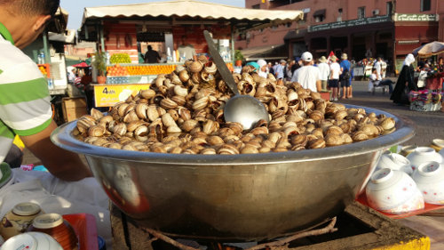 | Lors des saisons hivernales, les escargots sortent en grand nombre dans les campagnes marocaines. On peut les acheter au marché ou aller les collecter entre amis et familles.Pour les préparer, au Maroc on dit qu'il faut laver les escargots 7 fois. Une fois lavés, on les plonges dans un bouillant chaud d'épices, de graines, d'herbes et de racines.