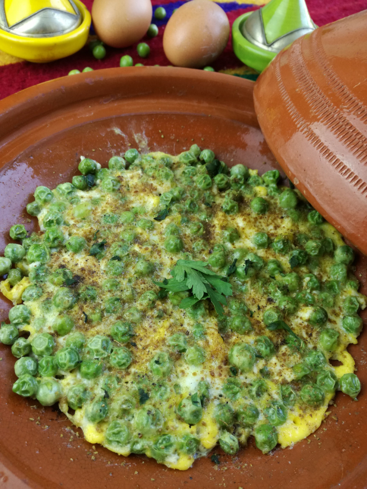 « Jelbana belbide » (traduite petits-pois aux œufs) est une omelette aux petits-pois. Petite recette printanière, servie comme plat principal ou en entrée.