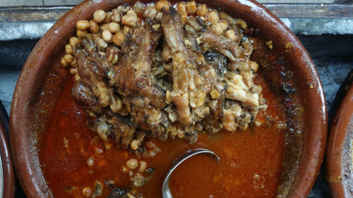| Dans la pure tradition marocaine, les pieds de bœuf constituent un repas très apprécié en hiver, grâce à sa texture gélatineuse gourmande, c’est aussi un plat consistant et riche en aliments (pois chiche, riz ou blé). La préparation des pieds de bœufs, passe par tout un processus qui précède leur cuisson, bien que préalablement grillés, grattés, lavés et détaillés par votre boucher, les pieds de bœuf doivent être lavés et trempés la veille dans de l’eau salée et vinaigrée, puis généreusement rincés le lendemain avant d’être utilisés. C’est aussi la manière dont les pieds de bœuf ont été lavés et préparés à l’avance qui détermine la réussite de ce plat, et conserve la saveur réelle des ingrédients, qui ne sera que légèrement imprégné par le goût des pieds de bœufs dans leur nature. La composition de ce plat varie d’une famille marocaine à l’autre ; certains utilisent uniquement de l’oignon et des pois chiches, d’autres ajoutent du blé ou de la pomme de terre, et il existe aussi la version sucrée préparée avec des raisins secs. Le temps de cuisson est relativement long (une heure ou plus). C’est un plat à servir chaud avec des tranches de pain et un bon verre de thé.