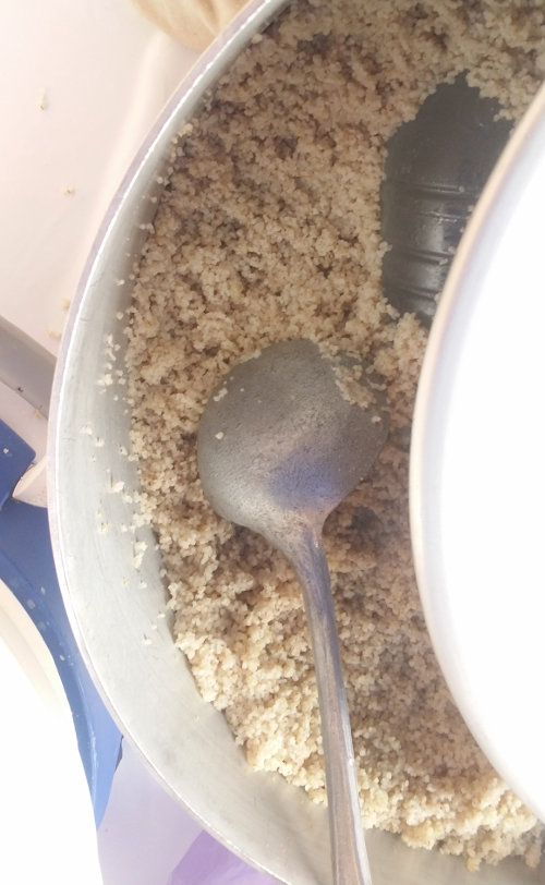 | Chaque vendredi chez les musulmans, est un jour de fête. C’est le meilleur jour de la semaine ! Les hommes se regroupent pour la prière du midi à la mosquée, et les femmes s’occupent à préparer le plat le plus majestueux de la semaine « le #couscous # aux sept légumes ». Et comme d’habitude, le #couscous# est souvent accompagné de « #lben# » (lait fermenté), une boisson veloutée et rafraîchissante aussi riche en vertus. Mais ce n’est pas tout, quand les mamans nous préparent du #couscous# pour le déjeuner, elles mettent de coté une quantité de semoule cuite mais sans sauce, qui sera mélangée avec du « #lben »# et servie pour le dîner. Une petite astuce qui permet aux mamans, qui ont travaillé dur pour nous préparer un bon #couscous# le matin, à se reposer le soir. En effet, le Saykouk, n’est pas juste un repas pour un vendredi, mais c’est aussi un plat qui est très apprécié en été, pour son pouvoir rafraîchissant. Servi froid, il se positionne aussi bien comme un dessert, très délicieux et léger, à l’heure du goûter.Le Saykouk aussi traditionnel qu’il soit, est depuis très longtemps considéré comme le repas « Street Food » le plus populaire servi dans la rue, vendu dans des stands à la sortie des écoles, et aux « souks » (marchés) hebdomadaires au Maroc.