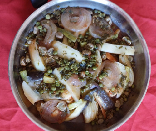 La "Khardoula" est tout simplement un tajine fait exclusivement avec des légumes. On y met tout ce qu'on a comme légumes, généralement de saison. On y ajoute parfois des graines de riz.